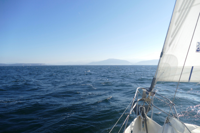 In the morning of the third day we see land in the distance. The early sunlight reveals the steep mountains of the Basque country. As we close in on the Spanish coast, signs of civilization become more plentiful. A ferry from Portsmouth, airplanes and fishing boats pass us. One of the fishing boats – how is it possible – manoeuvres exactly in our way. He calls on the VHF, but we can’t make any sense of his broken English, so we change course to avoid a collision. Not much later it’s Floris’s turn to employ his VHF skills. We’re on collision course with an impressive tanker. Floris asks it politely if it lets us pass in front of it. Yes, yes, we are going slowly to let you pass, comes the friendly answer. We have the right of way, but it’s ever so reassuring to know that we have been seen and can continue our course.