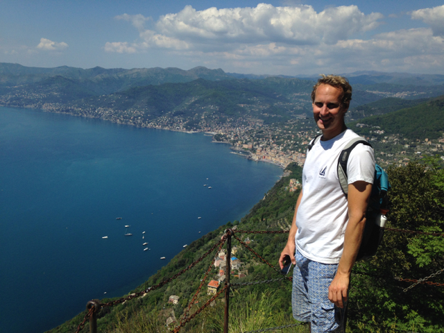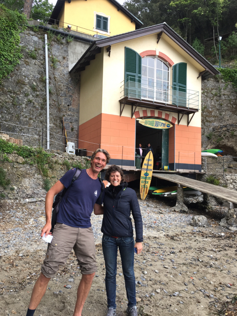 On a day that we don’t hike, we welcome Gregorio. He is a journalist working for a leading Italian online magazine, Liguria Nautica. He heard about us via Alessandra, and is taking quite a detour to visit us and conduct an interview. He waves at us from the quay, so we pick him up by kayak, and answer all of his many enthusiastic questions. His article is already online the next day. It marks our first appearance in a foreign magazine!