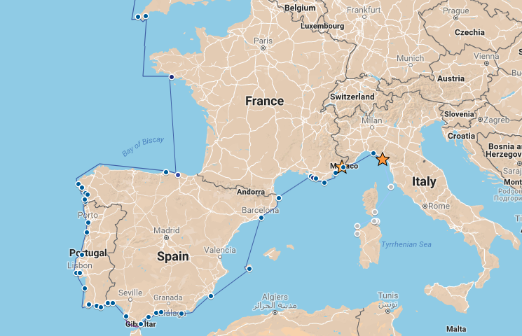 We don’t have to go far. The bay east of Nice offers good shelter, so we anchor there, close to Villefranche-sur-Mer. While we wait for fair winds to sail to Italy, Floris researches potential stopovers. He discovers that the marinas in the region consider May 1st the start of the high season and charge correspondingly high prices. The first sheltered anchorage along the Italian coast is more than 100 nm away: a bay near Portofino.