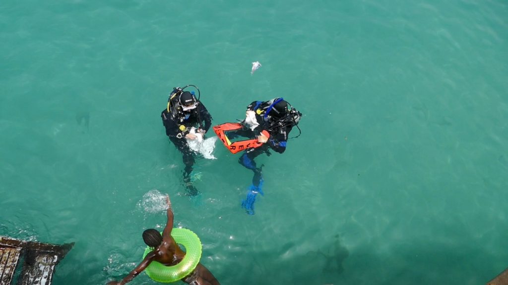 A few days later we’re back in Santa Maria to witness and join an underwater clean-up. “We mostly organize beach clean-ups, but every now and then we also involve the diving community,” Shannon explains. “A lot of the plastic pollution sinks to the sea bottom and forms a direct threat to the sea turtles and other marine life.” We count some 20 divers, who collect a truckload of waste over the next hours. A beach restaurant supports the clean up by sponsoring an Italian lunch for the divers, which we are invited to join.