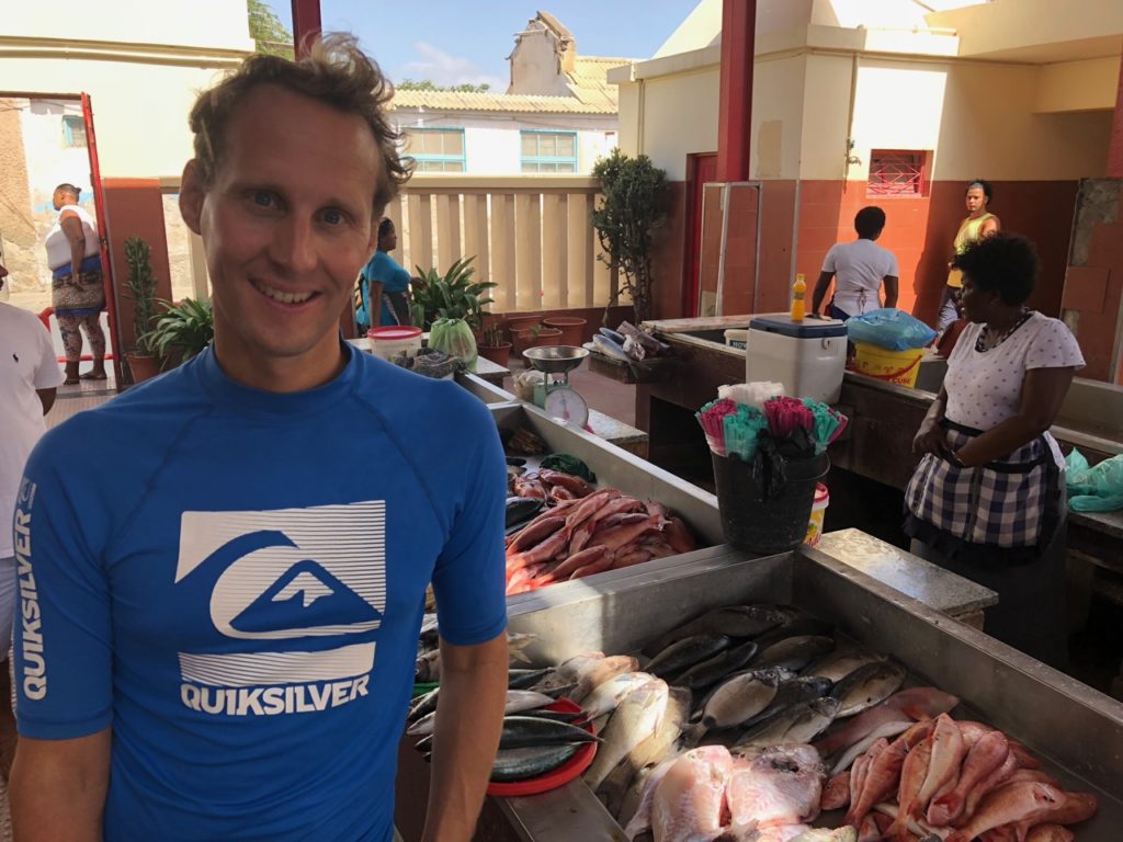A few hours later tour the town of Palmeira on foot. Its coloured houses make for a friendly and laid-back atmosphere. Small shops and a few bars and restaurants line cobble-stone streets. The town is small and quiet, with the most activity centred around the port, where fishermen sell their day’s catch to women with large tubs. We visit the police and immigration official, who sends Floris to the library to make copies of the form we had to fill in. After we pay a 5-euro fee, we get our visas and are free to cruise the islands.