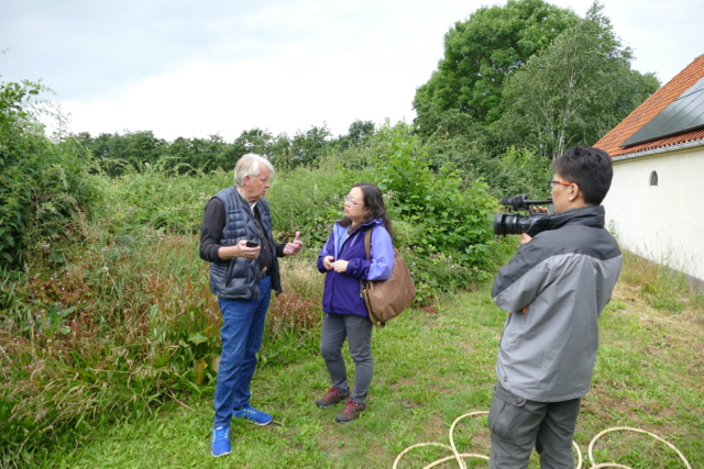 During our visit, there is also a Chinese news agency film crew. We join them on a visit the house of Jesper Roug Kristensen, a staff member of the “Energy Academy”. Jesper’s home is an excellent example of sustainable housing. An electrical heat-pump produces hot water, solar panels generate electricity, and his floor insulation reduces his energy consumption. He collects rainwater to water the fruit and vegetable garden and composts his green waste. His methods are not only environmentally friendly, but also cost-saving in the long run.