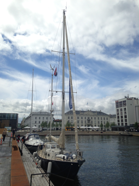 We set sail for Copenhagen when the wind decreases to a W5. During the day we make good progress towards the northern tip of Sjælland, the island on which Copenhagen is located. When darkness falls we reach the lee of Helsingør. This Danish town is legendary for the toll that ships had to pay, which helped pay for the impressive castle on the waterfront. Here we enter the Sont, the narrow and busy straight between Denmark and Sweden. Ferries frequently sail the short distance to Swedish Helsingborg. We quickly learn that they also do so during the night, so we use the engine to make some extra speed and get out of their way. Further southward in the Sont, the wind increases and we’re closing in on Copenhagen with speeds of up to 9 kts. When we enter the city early in the morning, we pass the little mermaid sitting lonely on her stone. Quite a rare sight, as she’s one of Copenhagen’s main tourist attractions. Close to our envisaged destination we see a closed bridge that is not on our map. We decide to moor up at a quay just before the bridge to get some sleep. However, only a few hours later we’re woken up by the harbourmaster who wants us to pay on the spot. As we discover during the day, the bridge is newly opened and part of the new biking and walking infrastructure development program. We decide to stay on our pontoon in Amaliehavn, and leave the recommended but crowded Christianhavn for what it is. We’re ready to explore Denmark’s capital city, discover its sustainability ambitions and meet new people.