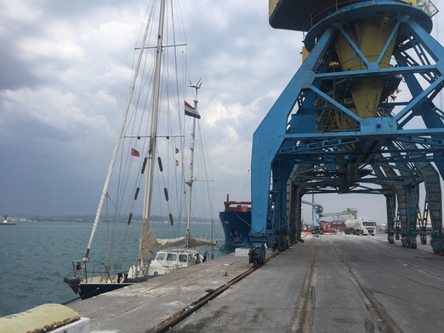 Local fishing boats help us decide. They are fishing in the former minefield. “I’ve never been so happy to see fishermen”, Ivar sighs. We reach the port without any problems. On the quay between a bulk carrier and a tugboat, just under a gigantic crane, our agent Ilir is waving at us. He has arranged this berth so we can safely leave Luci and travel to the capital Tirana.
